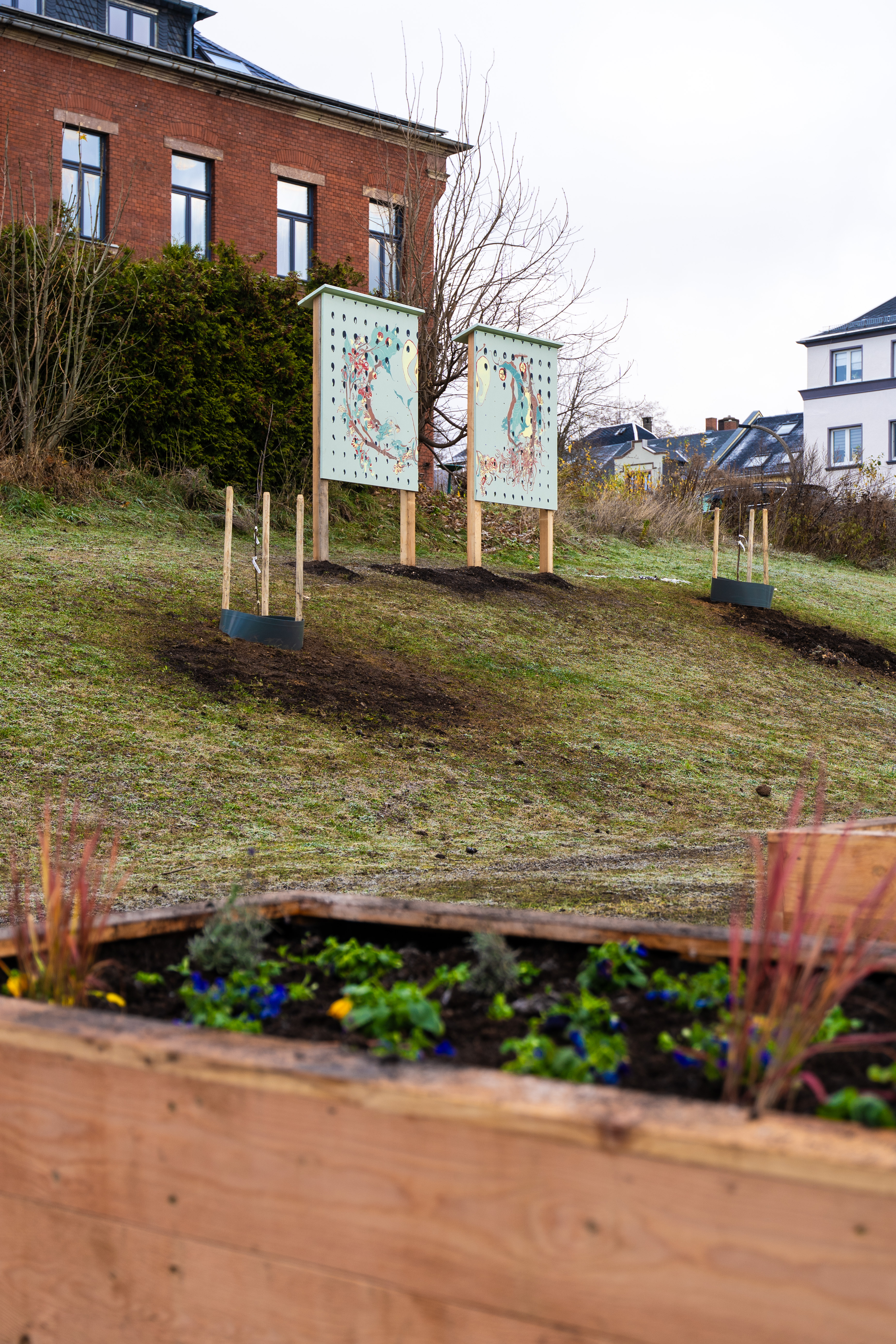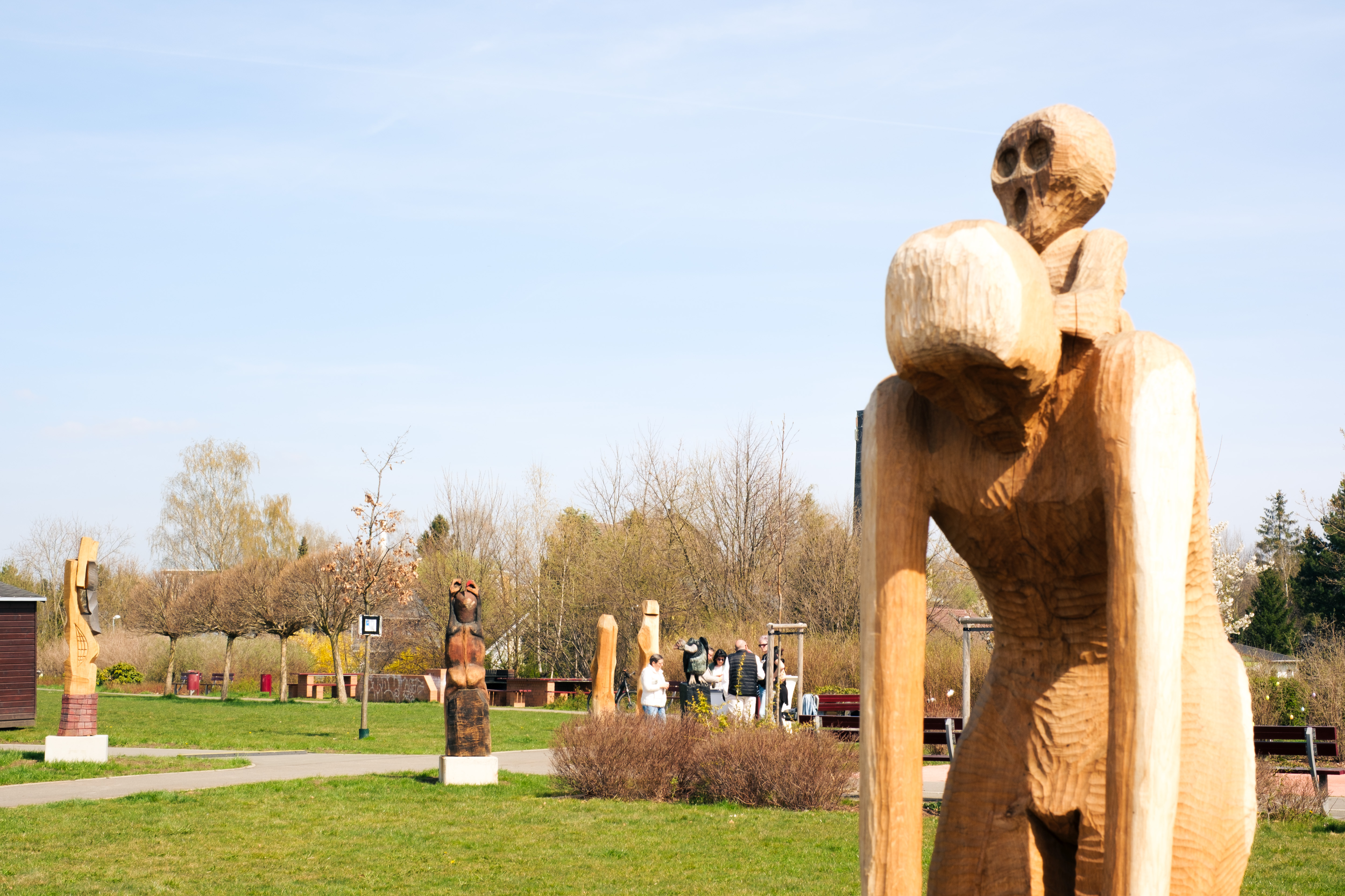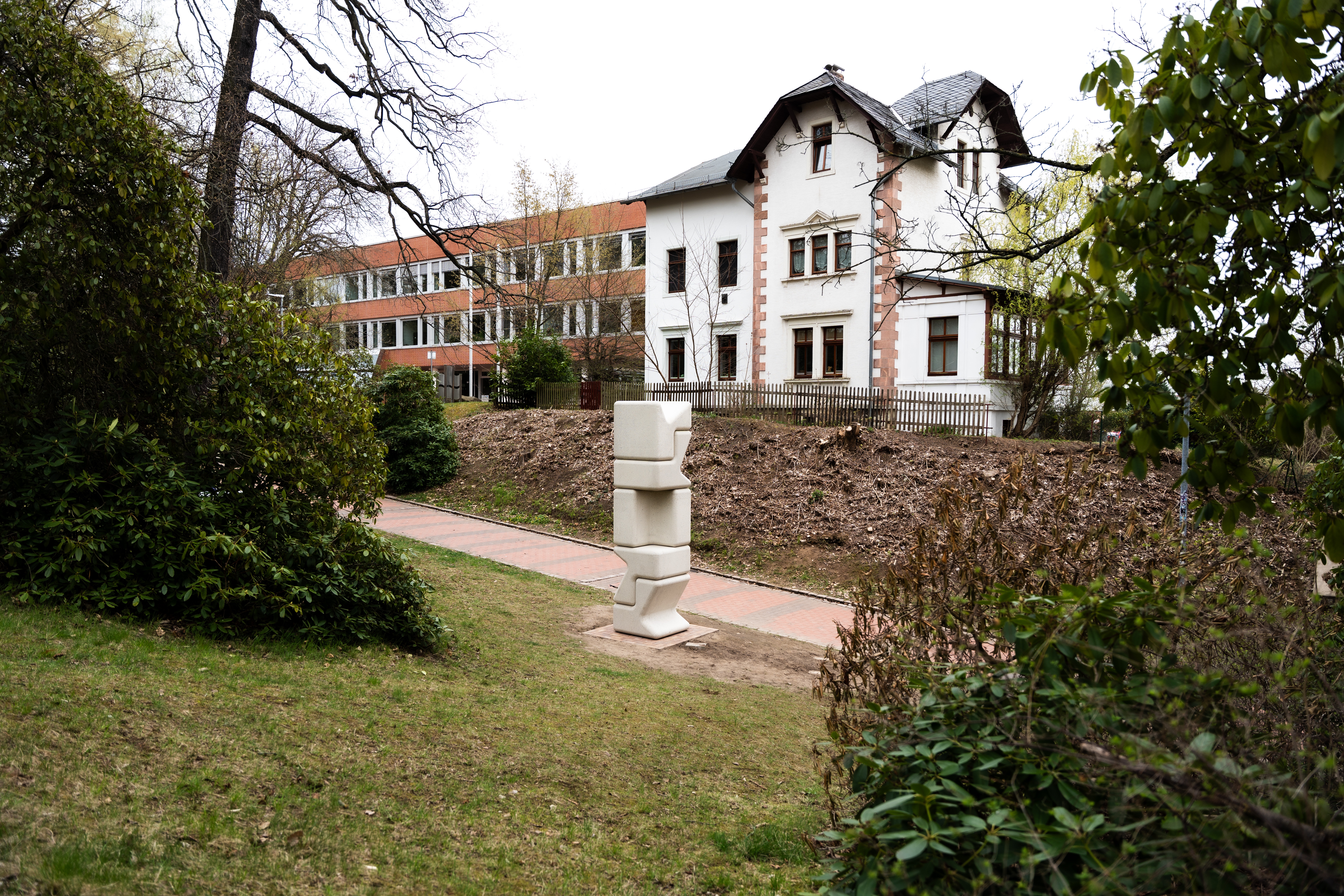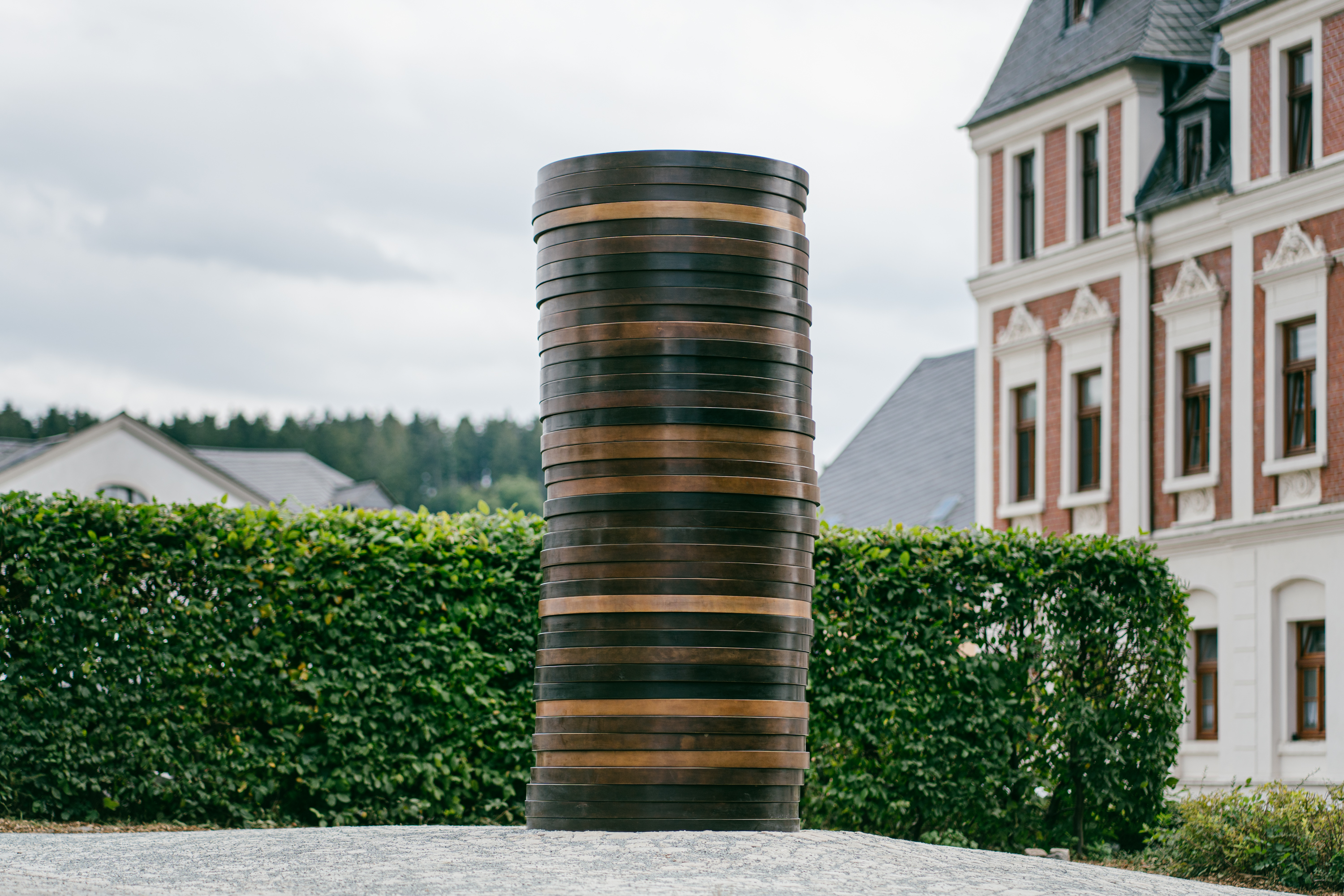 Despite ongoing construction work until around the end of 2026, Tony Cragg's artwork ‘Stack’ in the Aue-Bad Schlema spa gardens remains open to the public. Please follow the signs.