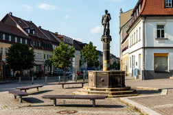 Lippert's allegory of work survived all the divergent political systems of the 20th century, regardless of its creator's original artistic intention. While the people of Frankenberg in the 1920s saw the ‘Nakschen Mann’, as the fountain sculpture is popularly known, as a symbol of the powerful reconstruction after the end of the First World War, interpretations shifted under Nazi rule in the 1930s and 1940s to a symbol of nationalist work ideology. Lippert's work also seemed to fit in with the artistic understanding of Socialist Realism in the early GDR and its postulates of closeness to the people, partisanship and comprehensibility. After its restoration, the sculpture, which today has become the ideologically uncontested landmark of the city of Frankenberg, became part of the Purple Path: as an early testimony to communal-collective patronage and as a symbol of the shift in the interpretation of art in public space during the transition of political systems, as well as the centre of the ‘Skulpturenpfad Frankenberg/Sa.’ (Frankenberg/Sa. Sculpture Trail) initiated by the local art and culture association, featuring contemporary art.