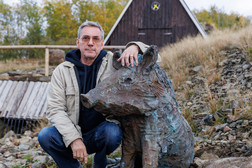 In Ehrenfriedersdorf, Wolff intervenes with three bronze sculptures in the open air behind the visitors’ mine and the mineralogical museum , which can be read as life-size wild boars. They stand, sit or lie on the floor without a pedestal. The traces of work are clearly recognisable on the bronze bodies, which the artist has dynamically carved out of the damp model material with his bare hands and simple tools, as if they were created directly on site and from the location.