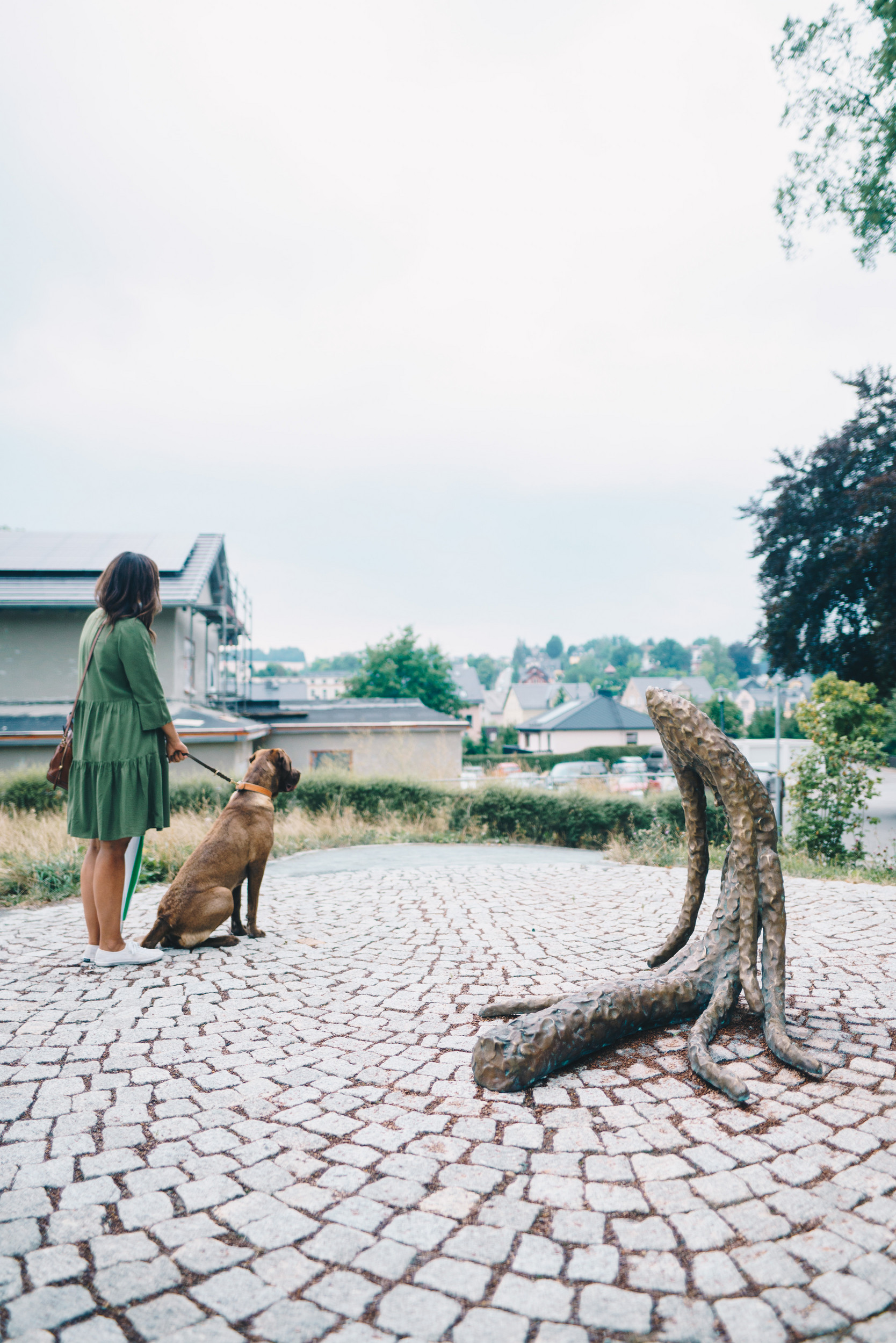 From the 19th century onwards, stocking knitting became the main industry in Thalheim. With the construction of the Chemnitz - Aue railway line in 1875, Thalheim became a boom town. At the height of industrialisation in 1925, the town had 120 factories. The Buntsockenpark, where Friedrich Kunath's sculpture ‘Include Me Out’ is located, is a place that tells the intertwined stories of breaking with tradition and innovation, sustainability and climate change. The park was renovated with funding from the European Union (ERDF) and the Free State of Saxony.