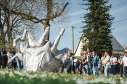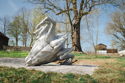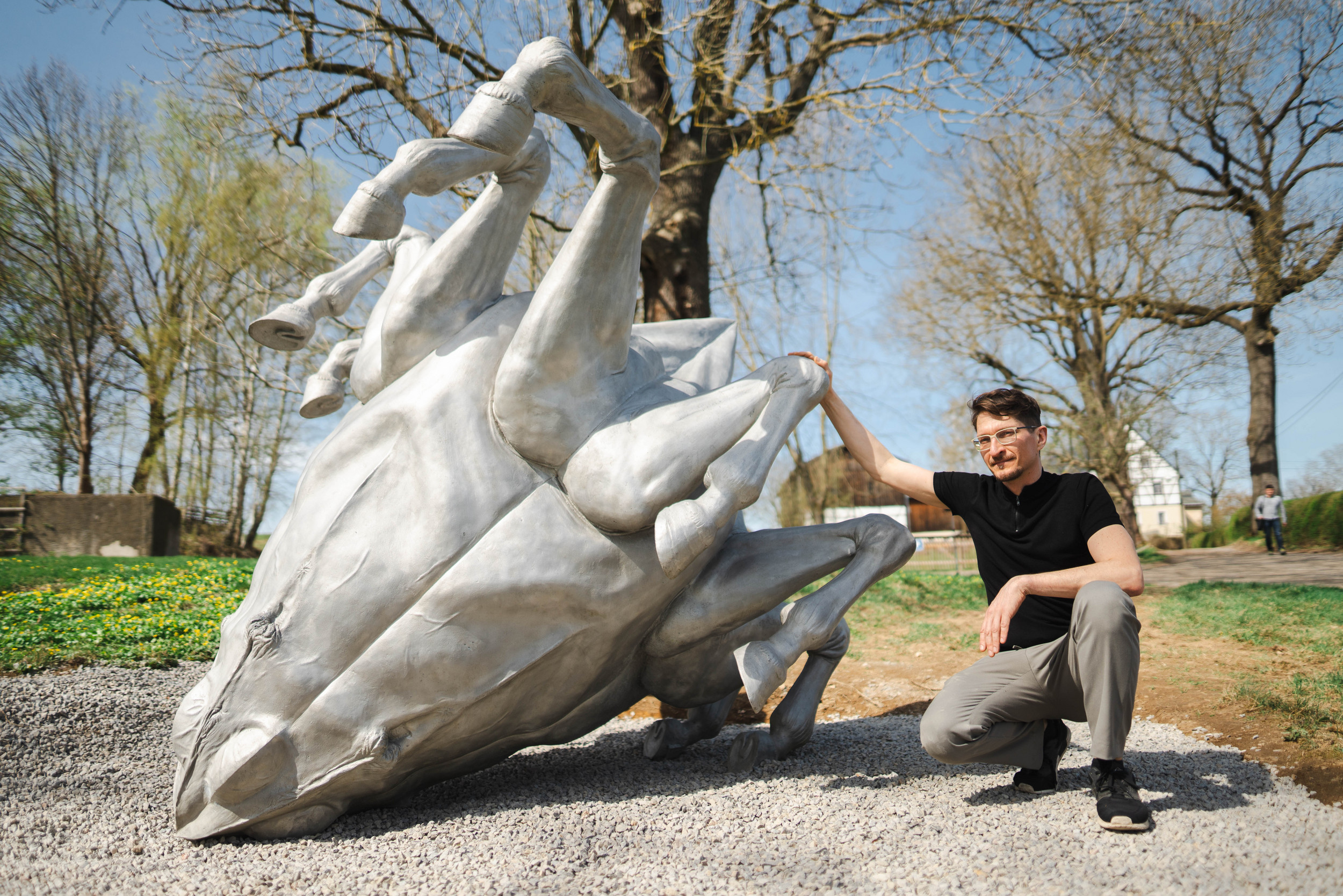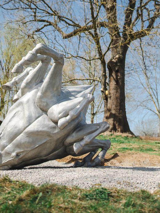 The artist Gregor Gaida, born in Chorzow, Poland, in 1975, created the 'Polygonal Horse' sculpture in 2011. Cast from aluminium, Gaida's depiction of a horse no longer has a head, but instead has ten legs that it stretches into the sky. The former horse gin became a spatial reference for Gaida’s work, which acts out an ambivalent situation between strength and helplessness.