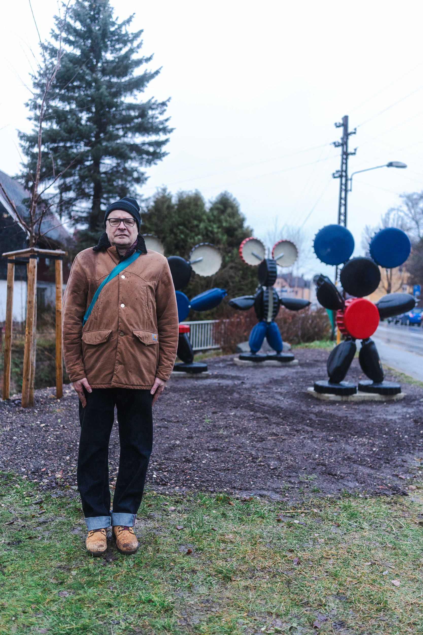 Born in Weimar in 1965, Jan Kummer now lives and works in Chemnitz. In his visual worlds, he takes up narrative elements that create connections between a world of memories, presumably consisting of fragmented set pieces, and the present that he observes in this way. With the sculpture group Heimat Ensemble II, the artist cites the idea of home and handicraft as well as regional customs. With the motif of remembered self-perception, he also creates a look back at the society of scarcity in the GDR: everything was tested for its usefulness, cleverly utilised in a second production cycle and today memory becomes art.