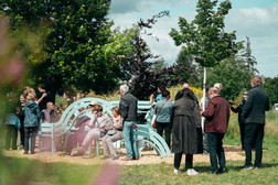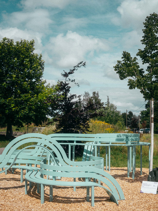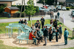 Together with the citizens of Jahnsdorf, the artist counters this controlling and marginalising design of urban space with a work of art in an undesigned space below the railway station. Here, Hein's sculpture "Modified Social Bench for Jahnsdorf #01", created in 2024, playfully opens up a field of interpersonal communication in which the meeting of people takes centre stage.