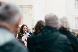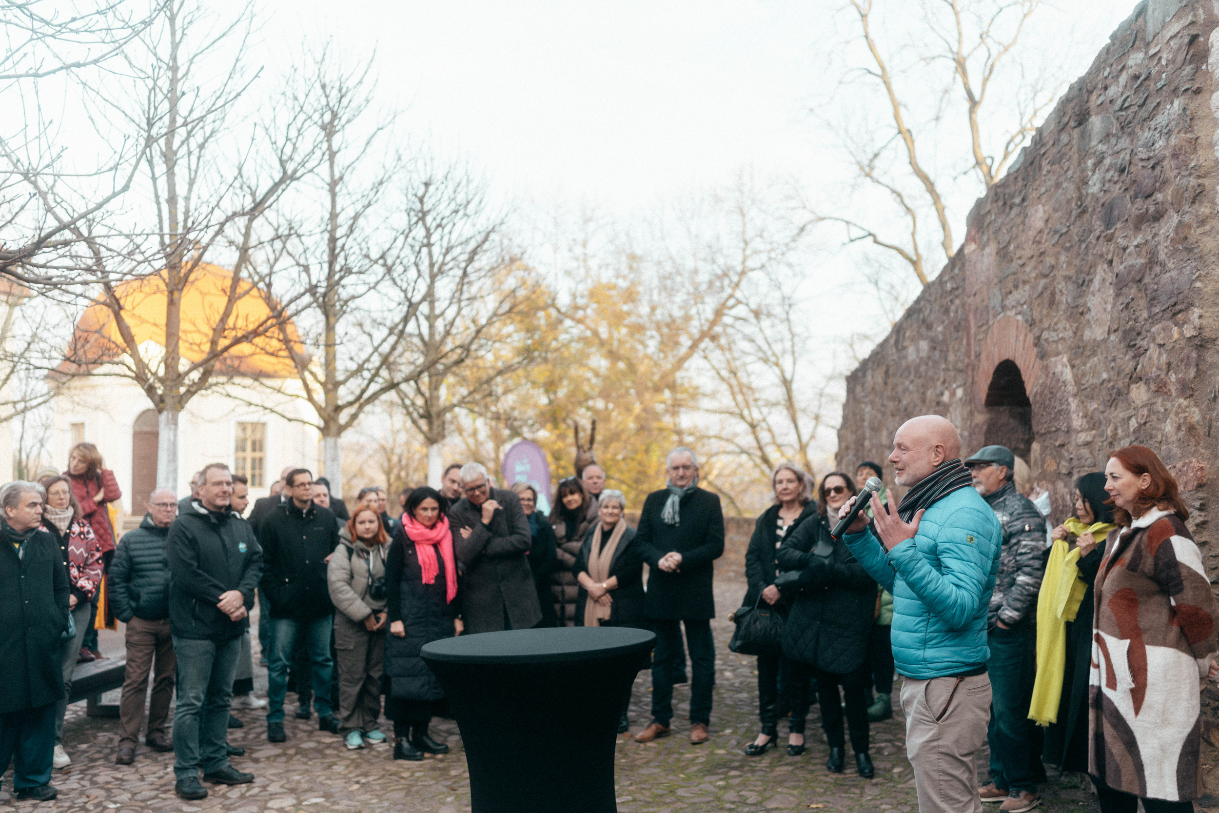 The placement of Ikemura's Usagi Greeting in the courtyard of the baroque Lichtenwalde castle complex makes reference to the collections of Asian artefacts on display in the Schatzkammer Museum: Chinoiseries meet art and ritual artefacts from Nepal, Tibet, China and Japan. By contextualising her sculpture, the artist extends the museum presentation beyond the visual display value and exploratory observation to include the mysticism inscribed in the objects as well as their history. Ikemuras Usagi thus expands the Purple Path to include a content-related perspective: it leads the gaze from the European context to the cultures of East Asia.