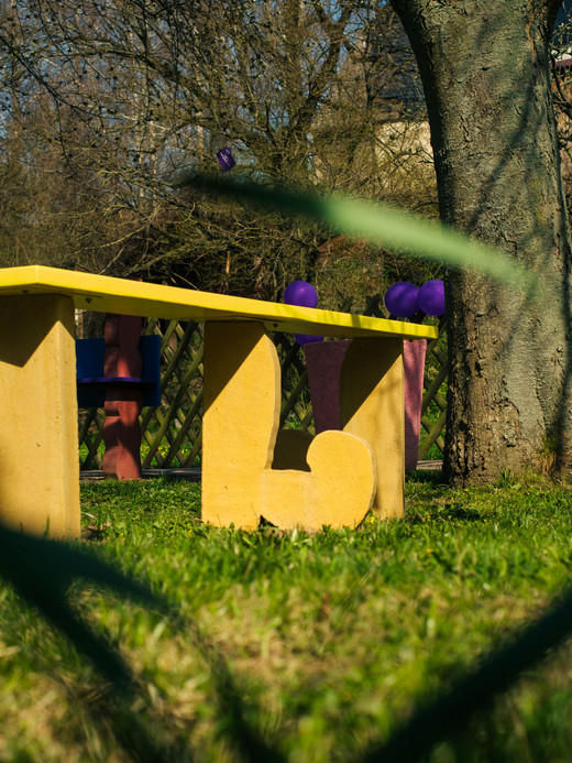 The sculptures that Maruša Sagadin designed and created for the Purple Path are located in the entrance area. They can be used as benches to sit on and invite you to linger. This creates a new kind of place for encounters and communication.