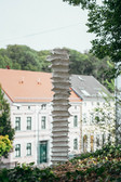 In Hainichen, Endless Column stands beside the birthplace of the poet, philosopher and Enlightenment philosopher Christian Fürchtegott Gellert, who was born in 1715, and above a monument to the engineer Friedrich Gottlob Keller, who was born a good century later. Gellert, a Leipzig university professor who taught in the 1740s and 1750s, saw his ethics lectures and poetic fables as practical moral teachings. He inspired a generation of young poets, including Johann Wolfgang von Goethe and Christiane Karoline Schlegel. In the mid-18th century, his writings were the best-selling publication in the German language after the Bible. His success pre-dated the use of industrially produced wood pulp paper, whose development in 1816 is credited to Keller.