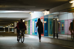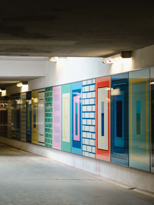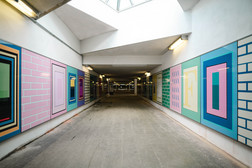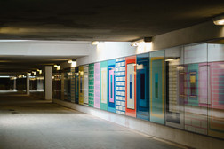 Rochelmeyer’s work is not imagery as such; nor does it convey a specific message. It recalls fleeting glimpses of landscapes, architecture, posters and people as seen from a passing train. The colours and shapes combine with the architecture and the movement and intent of the passers-by in the tunnel, so that these images change direction, speed, lighting and even mood depending on where you are; the impressions will stay with you throughout the day.
