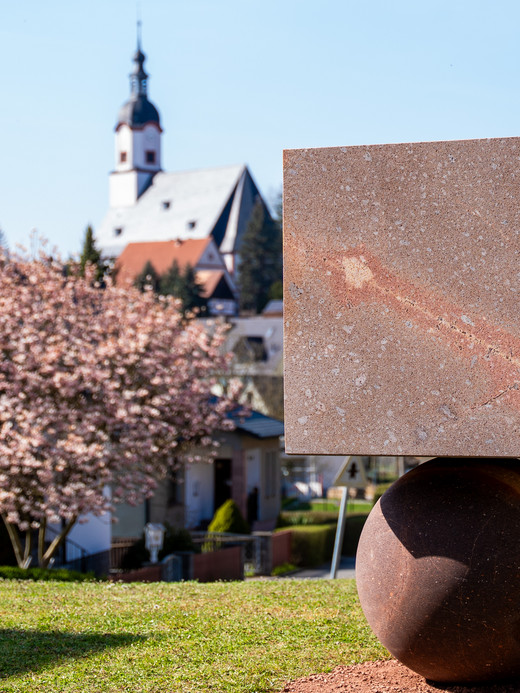 Kris Martin stellt mit ´Good Luck´ den Kubus und die Kugel quasi auf den Kopf. Die Balance der Komposition beider gegensätzlicher Körper aus rotem Rochlitzer Porphyr wird somit prekär. Diese Revolution – im wörtlichen Sinne: Umdrehung - fordert zu einem konzeptionellen Umdenken von Gewissheiten und Zweifeln, von Unruhe und Stabilität der Welt heraus. Diesen Gedanken im Kopf tragend sollte man sich auf den Weg zum Kloster Wechselburg mit seiner romanischen Basilika machen.