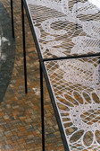 Rhythmisch aneinandergereihte florale Elemente erinnern an Spitzen und Borten, assoziieren das in Annaberg-Buchholz besonders relevante Kunsthandwerk des Klöppelns und versetzen den Betrachter so auf eine Reise, die mit der im 16. Jahrhundert lebenden Montanunternehmerin Barbara Uthmann ihren Anfang nimmt. Uthmann übernahm nach dem frühen Tod ihres Mannes die Leitung der Silberbergwerke und betrieb (bis zu ihrer faktischen Enteignung durch Kurfürst August von Sachsen im Jahr 1567) die Saigerhütte in Grünthal. Um 1560 führte sie die Produktion und den Betrieb von Borten, Spitzen und Posamenten ein und brachte zeitweise bis zu 900 Frauen in Heimarbeit. In unmittelbarer Nachbarschaft des Unteren Bahnhofs findet sich mit dem Frohnauer Hammer, einem 1621 eingerichteten Silber- und Erz-Pochwerk, das älteste Industrie-Denkmal Sachsens. Der Untere Bahnhof wurde 1866 als Teil der damals wirtschaftlich wichtigen Eisenbahnstrecke zwischen Zwickau und Chemnitz eröffnet, in DDR-Zeiten wurde die Strecke auch von der Uran produzierenden SDAG Wismut genutzt. Im Jahr 1997 wurde der Schienenverkehr zwischen Annaberg-Buchholz und Schwarzenberg eingestellt, 2021 wurde von der TU Chemnitz der Smart Rail Connectivity Campus (SRCC) eröffnet, in dem zur Zukunft der Bahn geforscht wird. So könnte „Braided Journey“ dem Publikum auch einen Blick auf eine mehr als 460-jährige Reise durch die Ökonomie des Erzgebirges freigeben.