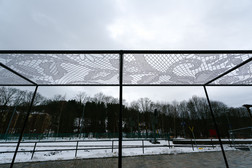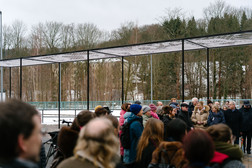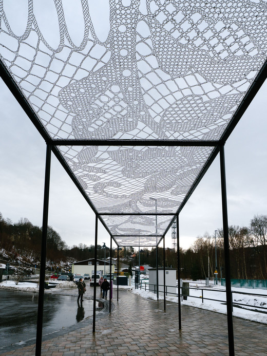 Obwohl spezifisch für den Ort geschaffen, steht die großformatige Skulptur „Braided Journey“ (dt. Geflochtene Reise) wie absichtslos und im ersten Moment vielleicht nicht als Kunstwerk zu erkennen am Unteren Bahnhof in Buchholz. Das von der niederländischen Künstler- und Designergruppe Redfort architectural fabrics geschaffene Werk spielt mit der Idee einer skulpturalen Zeichnung im Raum, aber auch der einer für einen Bahnhof üblichen Bahnsteig-Überdachung. Vier jeweils 3,90 x 2,90 Meter große, aus mit weißem Kunststoff beschichtetem Stahldraht gefertigte Geflechte sind zwischen acht jeweils vier Meter hohe Säulen aus Stahl gespannt.